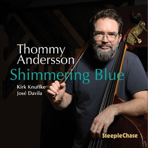 Swedish bassist and composer Thommy Andersson makes his long-awaited SteepleChase leader debut with Shimmering Blue, a striking trio recording featuring Kirk Knuffke (cornet) and Jose Davila (helicon, tuba, didgeridoo, euphorium, and bass flute). Known for his work with Pierre Dorges New Jungle Orchestra, Andersson now steps forward with a highly personal sound world-drumless, low-brass rich, and full of lyrical nuance. Drawing on his background as a trombonist and cellist, Andersson crafts compositions that shimmer with color and emotional depth. From rustic tone poems to avant-garde textures, the album explores space, resonance, and melodic interplay with chamber-like intimacy.