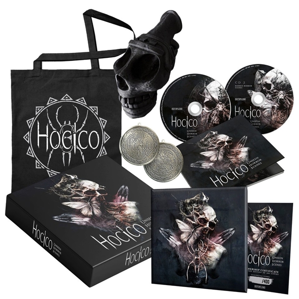 Limited Fan Box Set This Box Set is the ultimate collector's artifact. Strictly limited to 400 hand-numbered copies! Packaged in a beautiful premium-quality printed box, this set contains: -2CD Digipak (incl. bonus CD) -Real Mexican death whistle - Box-exclusive! -Ceramic tile with Hocico art print (add-on collectable to the "Hyper Violent" tile) - Box-exclusive! -Hocico-branded Aztec necklace (pendant + chain) - Box-exclusive! -Tote bag - Box-exclusive! -Hand-numbered certificate of authenticity - Box-exclusive!