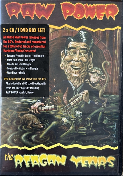 A collection of all the 'Essential' Raw Power material from the 80's. Over 4 albums worth of songs (62 tracks) as well as 2 live shows on DVD! Also included is a full DVD sized lyric book with liner notes by Mauro 'singer' and co-founder of 'Raw Power'. The cover of this was painted by the legendary artist Vince 'Rancid' Packard. All the classic 80's material from this legendary band in one collection. Comes with a DVD sized booklet and features full length albums: Screams From The Gutter, After Your Brain, Mine To Kill, You Are The Victim and The Wop Hour 7"!